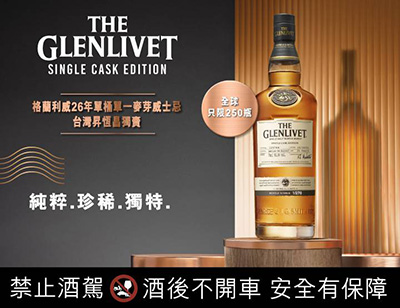 格蘭利威26年全球單一桶原酒單一麥芽-全球限量250瓶 $27,800